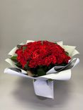 Этот букет – истинное воплощение страсти, элегантности и неподдельных эмоций. 101 ярко-красная роза, бережно обернутая в стильную серую упаковку, создаст неповторимую атмосферу торжества и романтики. Каждый бутон этого букета словно рассказывает историю вашей любви, восхищения и преданности.
