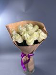 Букет из 15 белых роз в крафте