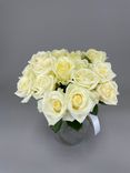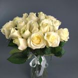 - Состав: 15 крупных белых роз, создающих ощущение легкости и воздушности.