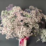 Гипсофила — это символ чистоты, невинности и бесконечной нежности. Радужная палитра гипсофилы придает этому букету особую динамику, создавая атмосферу счастья и радости. Такой букет может стать отличным подарком для человека, который ценит искренность и светлые эмоции, наполняющие жизнь.