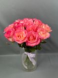 Такой букет можно подарить любимому человеку, подруге, коллеге или родственнику на 8 марта, день рождения, помолвку, свадьбу или просто чтобы порадовать без особого повода. В интерьере букет из розовых роз будет выглядеть очень красиво и нежно. Он добавит в комнату атмосферу романтики и уюта. Лучше всего такой букет будет смотреться в светлой комнате с минимальным количеством декоративных элементов.