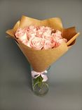 Букет из 15 розовых роз в крафте