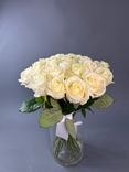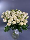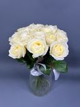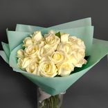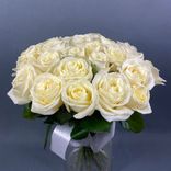 Букет из белых роз — это способ передать чувства и подчеркнуть важность момента. Компактная композиция из 23 цветов добавит особую атмосферу каждому событию.