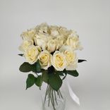 Этот букет сочетает естественность и элегантность. Белые розы без дополнительного оформления — это способ подарить радость и подчеркнуть значимость момента.