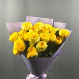 Чтобы купить букет из 5 желтых кустовых пионовидных роз в фиолетовой упаковке, оформите заказ на нашем сайте, укажите удобное время и место доставки, и мы доставим его вам в точно оговоренное время.