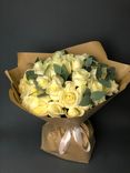 - Крафт-упаковка делает букет стильным и современным, подчеркивая его элегантность.