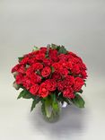 Каждая красная роза олицетворяет пламя страсти, искренность и решимость. Они словно говорят: «Я тебя люблю», каждый раз, когда на них смотришь. Этот букет — идеален для того, чтобы признаться в любви или выразить глубокую благодарность, поскольку его насыщенный цвет и элегантность говорят намного больше, чем слова.