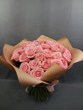 Естественная упаковка из крафт-бумаги добавляет букету особого шарма, подчёркивая натуральную красоту роз и создавая изысканный контраст. Каждая роза в этой композиции говорит о заботе, тепле и искренности, превращая букет в идеальный подарок для самых значимых моментов — признания в любви, годовщины или просто для того, чтобы сказать «Ты для меня особенная».
