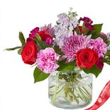 - Изысканная гармония: Сочетание роз, гвоздик, хризантем и маттиолы создает волшебную атмосферу, полную легкости и гармонии.