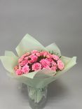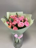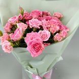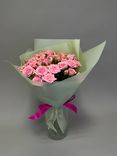 Букет «Императрица» из 11 розовых кустовых роз Кения в пленке с лентой