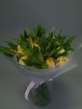 Букет из 10 желтых гербер и 9 альстромерий в прозрачной пленке