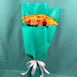Букет из 11 желто-оранжевых роз в зеленой бумаге