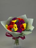 Букет из гермини — это яркий и жизнерадостный подарок, который сочетает в себе всю палитру эмоций. Миниатюрные герберы отличаются утонченностью и изяществом, а их разнообразные оттенки создают живую и насыщенную композицию. Каждая гермина словно лучик солнца, дарящий тепло и энергию, а зеленая упаковка подчеркивает свежесть и гармонию букета. Такой подарок станет универсальным решением: он уместен для выражения благодарности, поздравления или просто для того, чтобы поднять настроение близкому человеку.