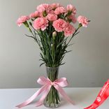 Изысканный букет из пятнадцати розовых гвоздик станет отличным способом выразить нежность, благодарность и глубокое уважение. Нежный оттенок цветов наполняет сердце теплотой и радостью.