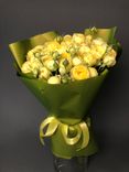 Букет из 15 желтых кустовых пионовидных роз, «Пиони Баблс» в пленке
