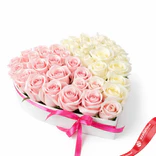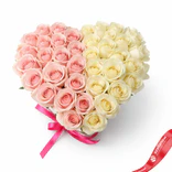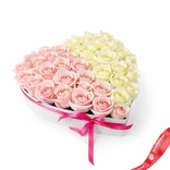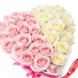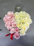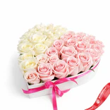 Букет из 17 розовых и 18 белых роз в коробке в форме сердца
