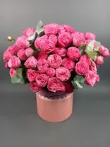 Великолепной красоты розовые пионовидные розы создают невероятный эффект объема и глубины. Пышные бутоны раскрываются, наполняя пространство тонким ароматом. Стебли убраны в шляпную коробку, внутри которой - специальная губка, пропитанная влагой. Букет долго будет радовать своим ароматом получателя!