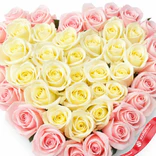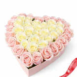 Букет из 22 розовых и 23 белых роз в коробке в форме сердца