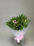Букет из 25 альстромерий микс в пленке с розовой лентой