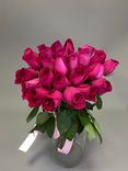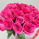 Букет из 25 малиновых роз с лентой можно купить в нашем интернет-магазине AzaliaNow с доставкой по Москве и Московской области. За покупку начисляются Азалия Коины: получайте бонусы на последующие заказы.