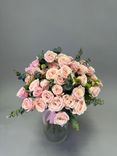 Букет из 25 пионовидных нежно-розовых роз (Эквадор) с лентой можно купить в интернет-магазине AzaliaNow с доставкой по Москве и Московской области. За покупку начисляются Азалия Коины: ваши бонусы для скидок на последующие заказы.