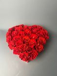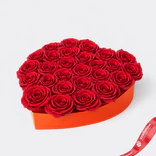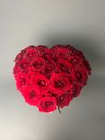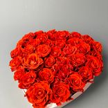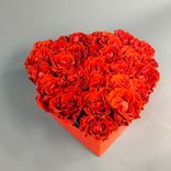 Букет из 25 роз в коробке‑сердце (цвет роз и коробки на выбор: красный/розовый/белый)