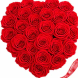 - Классическое сочетание красных роз и формы сердца — беспроигрышный вариант для романтического подарка.