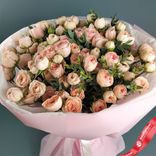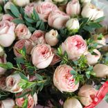 Букет из 29 розовых пионовидных роз с эвкалиптом предлагаем купить в интернет-магазине AzaliaNow с доставкой по Москве и Московской области. Оформите заказ на сайте быстро и удобно! За покупки начисляем Азалия Коины: получайте бонусы и скидки на последующие заказы.