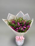 Букет из 31 розового тюльпана — это нежность и утонченность в каждом бутоне. Розовые тюльпаны символизируют заботу, теплоту и любовь, а бежевый цвет бумаги добавляет композиции мягкость и элегантность.