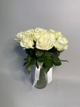 - Элегантность: белые розы — символ чистоты и изысканности, а длина стеблей 40 см придает букету утончённость.