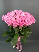 Букет из 31 розовой розы с лентой, 40 см, Россия