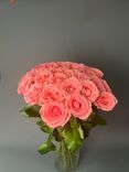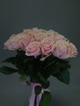 Букет из 31 розовой розы с лентой — это настоящая сказка, воплощённая в цветах. Длинные стебли, словно хрупкие нити мечты, поддерживают крупные бархатистые бутоны, которые манят своей нежностью. Розовый оттенок лепестков напоминает лёгкий румянец зари, даря тепло и утончённость. Этот букет создан, чтобы очаровывать и говорить о самых искренних чувствах.