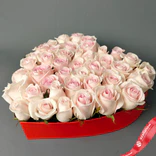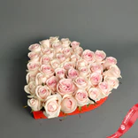 Букет из 35 роз в коробке‑сердце (цвет роз и коробки на выбор: красный/розовый/белый)