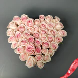 Букет из 35 розовых роз в коробке в форме сердца предлагаем купить в интернет-магазине AzaliaNow с доставкой по Москве и Московской области.