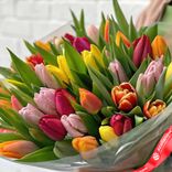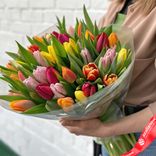 Букет из 35 тюльпанов микс в прозрачной пленке