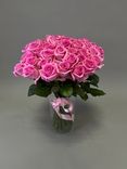 Этот букет из розовых роз будет прекрасным и романтичным подарком для вашего любимого человека, подчёркивая важность момента и наполняя его нежностью.