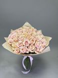 Букет из 45 розовых роз в крафте с розовой лентой, Россия, 60 см