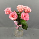 Букет из 5 розовых роз с розовой лентой, 50 см, Россия