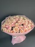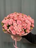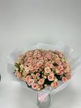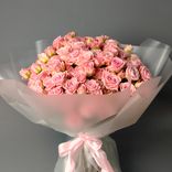 Букет из 51 кустовой розовой розы в белой пленке с лентой можно купить в интернет-магазине AzaliaNow с доставкой по Москве и Московской области, оформив заказ на сайте. За покупку начисляются Азалия Коины для бонусов и скидок на последующие заказы.