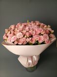 Букет из 51 кустовых розовых роз в бежевой пленке с лентой
