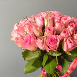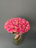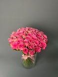 - 51 свежая розовая роза — пышный и гармоничный букет.