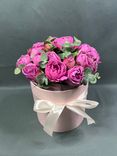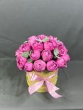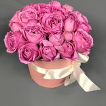 Букет «Мисти Баблс» — изысканная и нежная композиция, которая подчеркнет романтику и утонченность любого праздника. Эти розы обладают нежным оттенком и пышной формой, создавая эффект воздушной легкости. Бежевая шляпная коробка с лентой придает букету стильный и современный вид.