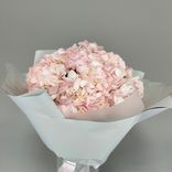 Букет из 9 розовых гортензий — это гармоничное сочетание мягкой нежности и стильной сдержанности. Розовые гортензии олицетворяют искренность, тепло и признательность, а серая пленка придает композиции современный, утонченный характер. Лента завершает образ, подчеркивая продуманность и аккуратность оформления. Такой букет будет уместен как романтичный подарок, знак благодарности или трогательное поздравление.