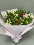Букет из альстромерий, эустом и рускуса
