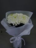 Букет «Лира» — это элегантная композиция, в которой белые хризантемы раскрываются особенно ярко благодаря нежной пленке. Пять пышных соцветий символизируют искренние чувства, уважение и светлую привязанность. Белый цвет делает букет универсальным, а лаконичное оформление придает ему утонченность. «Лира» станет прекрасным выбором для поздравления, поддержки или выражения благодарности.