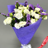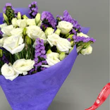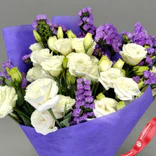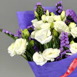Букет из 10 белых лизиантусов и 5 сиреневых статиц предлагаем купить в интернет-магазине AzaliaNow с доставкой по Москве и Московской области: оформите заказ онлайн быстро и удобно. За покупку начисляются бонусные баллы Азалия Коины для получения скидок на последующие заказы.