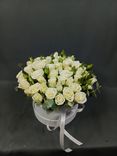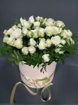 - Изысканный дизайн: Букет из белых кустовых роз в изящной коробочке — это не только цветы, но и стильный подарок, который выглядит дорого и утонченно.