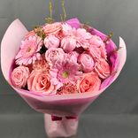 - Эффектное сочетание роз, гермини и гвоздик делает букет ярким и запоминающимся.