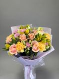 Этот букет — словно нежные руки, которые обнимают, согревая душу теплом и заботой. Его лепестки хранят сказки о любви, дружбе и радости, а тонкий аромат пробуждает мечты и воспоминания о самых светлых моментах.