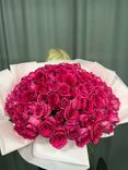 Большой прекрасный букет из 101 малиновой розы тщательно собран руками профессиональных флористов. Он упакован в элегантную натуральную крафт-бумагу, которая придает аранжировке завершенность. Грация и энергия букета завораживает!